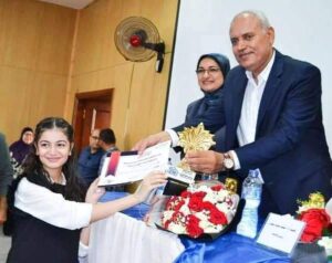 تكريم شهد من وكيل وزارة التربية والتعليم بدمياط لفوزها بمركز التميز والإبداع